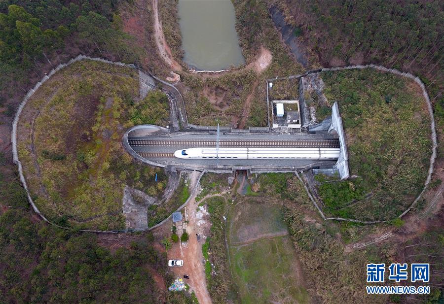 一列動(dòng)車穿越南寧郊區(qū)一處隧道(2月11日無人機(jī)拍攝)。 廣西壯族自治區(qū)成立60年來,鐵路建設(shè)發(fā)生翻天覆地的變化。來自中國(guó)鐵路南寧局集團(tuán)有限公司的數(shù)據(jù)顯示,1958年廣西鐵路總里程為1346.3公里,如今廣西鐵路總里程達(dá)5191公里。廣西與周邊相鄰省份間實(shí)現(xiàn)動(dòng)車“公交化”開行。此外,北部灣港—重慶班列、東盟海產(chǎn)品冷鏈班列、“百色一號(hào)”果蔬專列等的開通和運(yùn)營(yíng),強(qiáng)化了鐵路供給的針對(duì)性和有效性。鐵路成為助推廣西經(jīng)濟(jì)社會(huì)快速發(fā)展的“大動(dòng)脈”。 新華社記者陸波岸攝