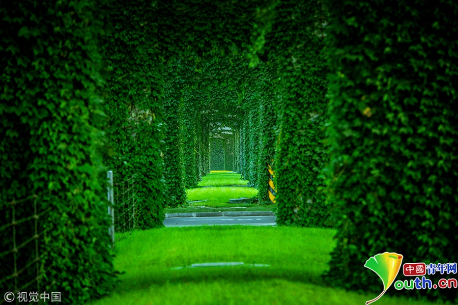 2017年7月9日,成都,被綠色植物包裹的二環(huán)路高架橋。圖片作者/視覺中國