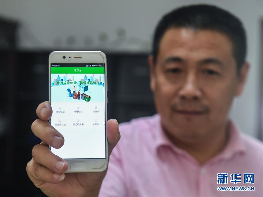 9月27日,工作人員展示垃圾分類APP的界面。從9月初開(kāi)始,浙江省長(zhǎng)興縣小浦鎮(zhèn)推廣使用手機(jī)垃圾分類智能管理平臺(tái)。通過(guò)這款A(yù)PP可以進(jìn)行村民垃圾分類情況打分、清運(yùn)員每日簽到、監(jiān)督員巡查等,并能即時(shí)生成農(nóng)戶垃圾分類“成績(jī)單”,所有農(nóng)戶均可通過(guò)APP查詢垃圾分類排行榜,既方便又環(huán)保。新華社記者 徐昱 攝