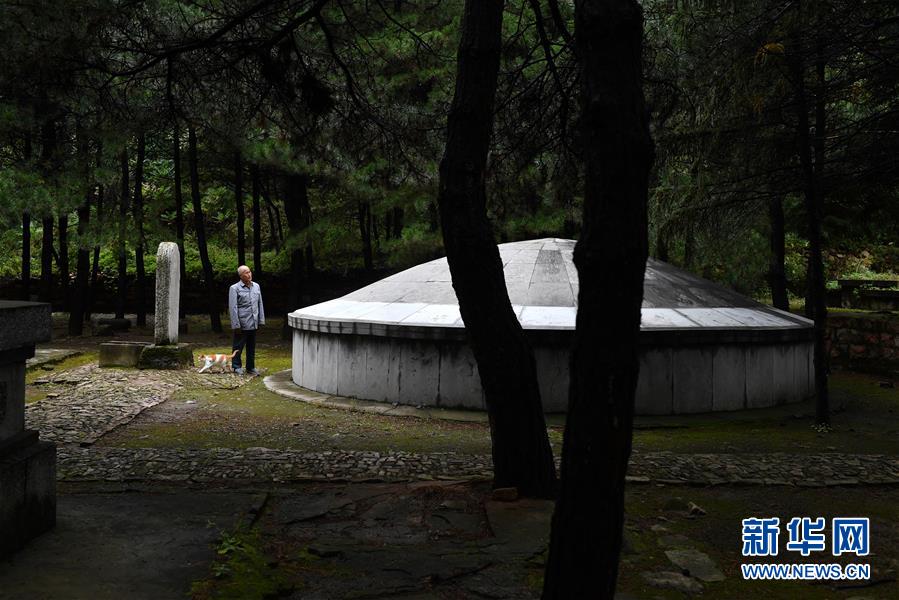 趙乃堂在黃崖洞烈士陵園烈士墓前肅立瞻仰(9月20日攝)。 新華社記者 詹彥 攝