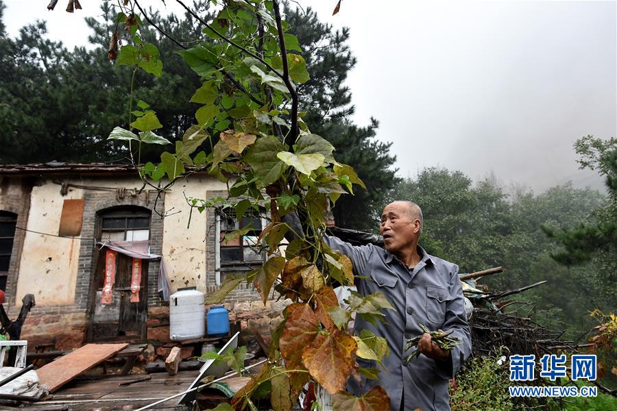 在黃崖洞烈士陵園,趙乃堂在采摘自己種的豆角準備做午飯(9月19日攝)。新華社記者 詹彥 攝