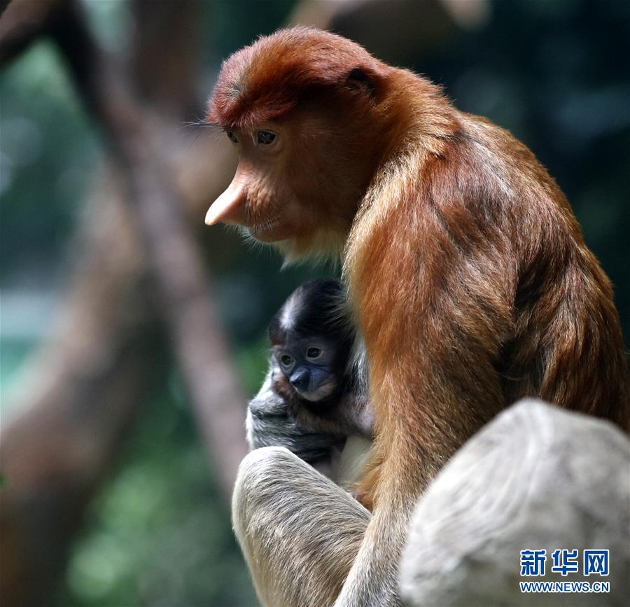當(dāng)日,廣州長隆野生動物世界的珍稀大鼻猴寶寶亮相。它于9月2日在長隆出生。2017年9月,長隆從印度尼西亞成功引進(jìn)國內(nèi)首批大鼻猴。 新華社記者 黃國保 攝
