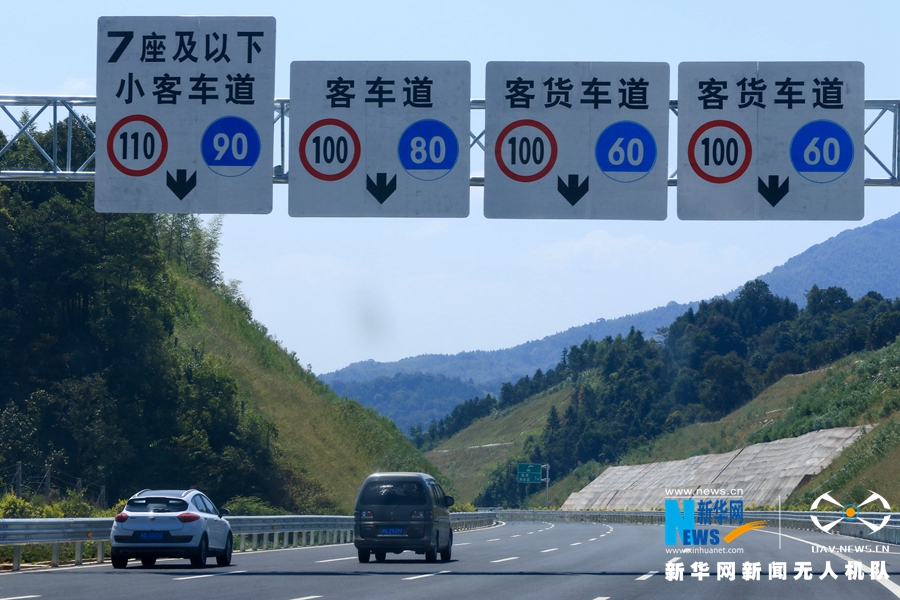 這是廈蓉高速長(zhǎng)下坡龍巖路段的道路景觀(無(wú)人機(jī)拍攝)。新華網(wǎng) 肖和勇 攝