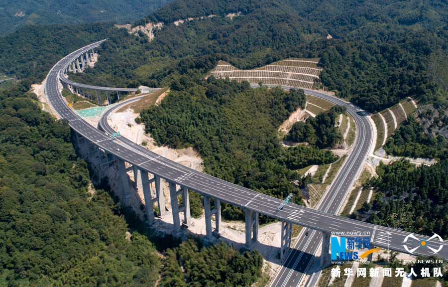 這是改擴(kuò)建工程施工后的廈蓉高速南靖縣和溪路段(無(wú)人機(jī)拍攝)。新華網(wǎng) 肖和勇 攝