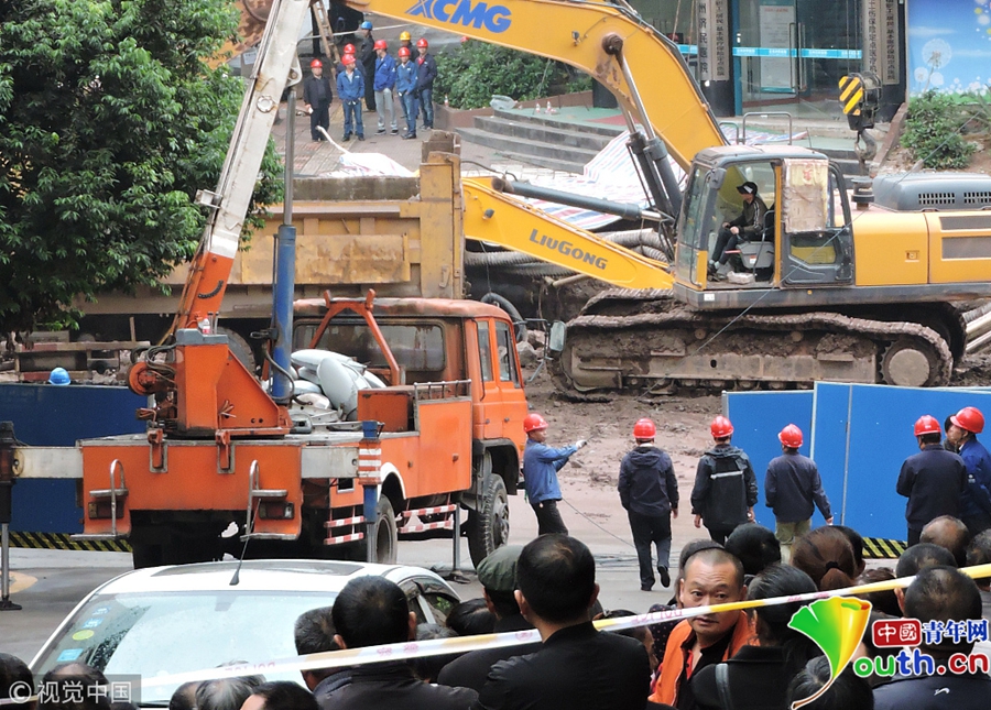 四川達州一人行道塌陷致2人死亡 救援仍在進行