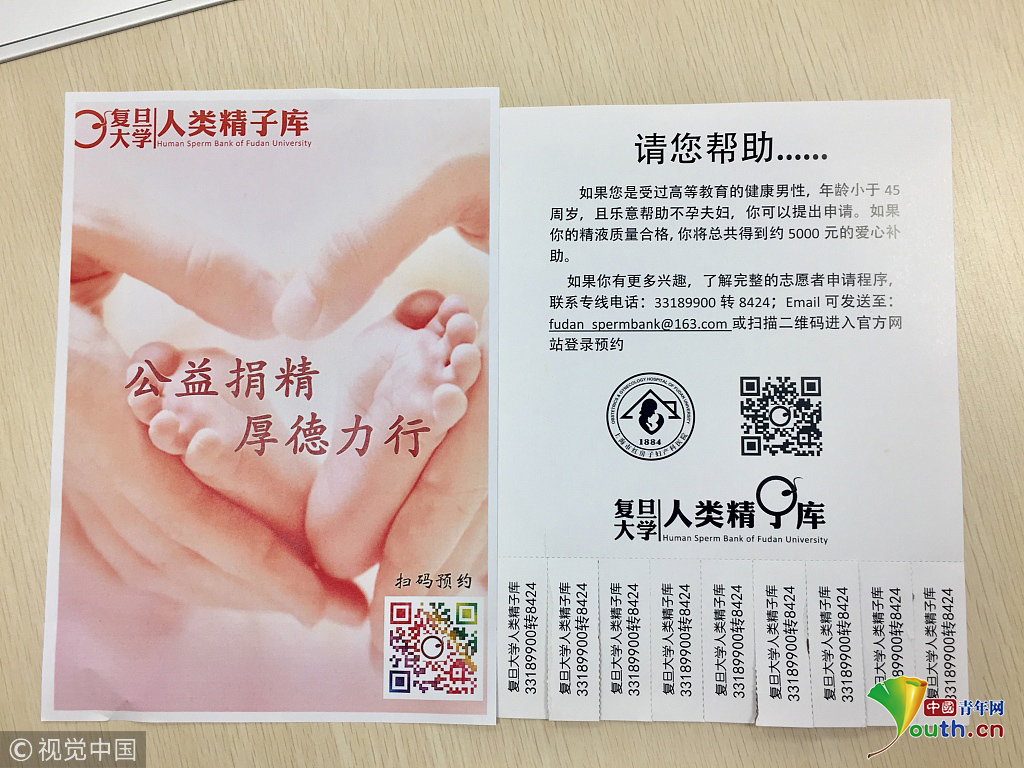 2018年9月20日,上海,實(shí)拍復(fù)旦大學(xué)人類精子庫。復(fù)旦大學(xué)人類精子庫宣傳單。圖片作者:陳斯斯