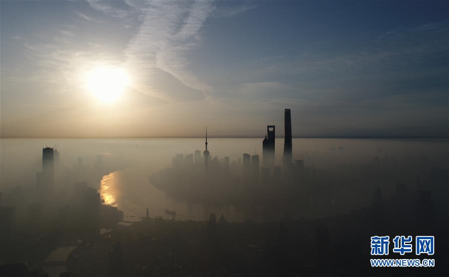 上海浦東陸家嘴晨曦(2017年9月20日無人機拍攝)。新華社記者 丁汀 攝
