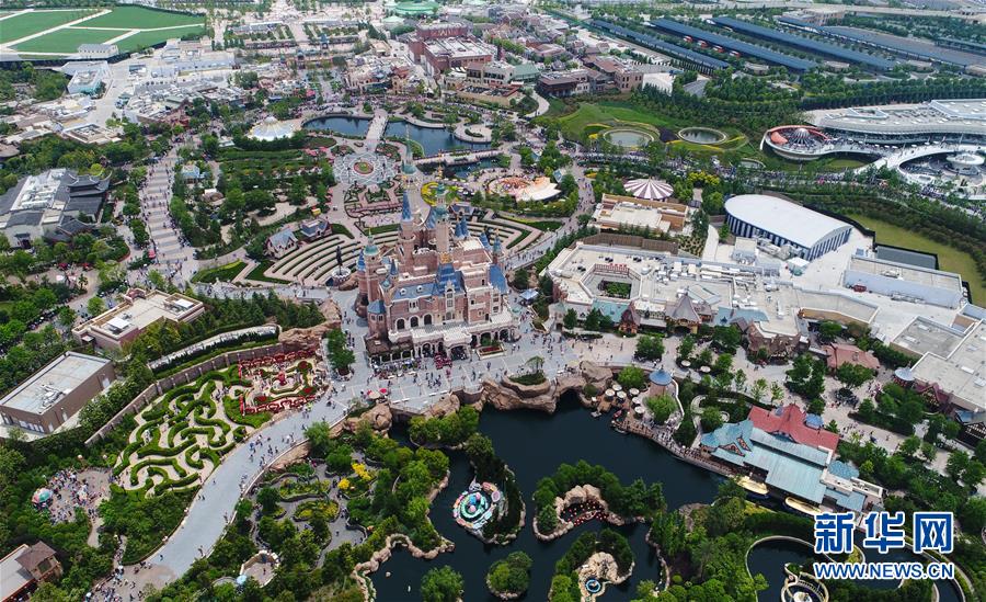 位于上海浦東的迪士尼樂園(2017年5月19日無人機拍攝)。 新華社記者 丁汀 攝
