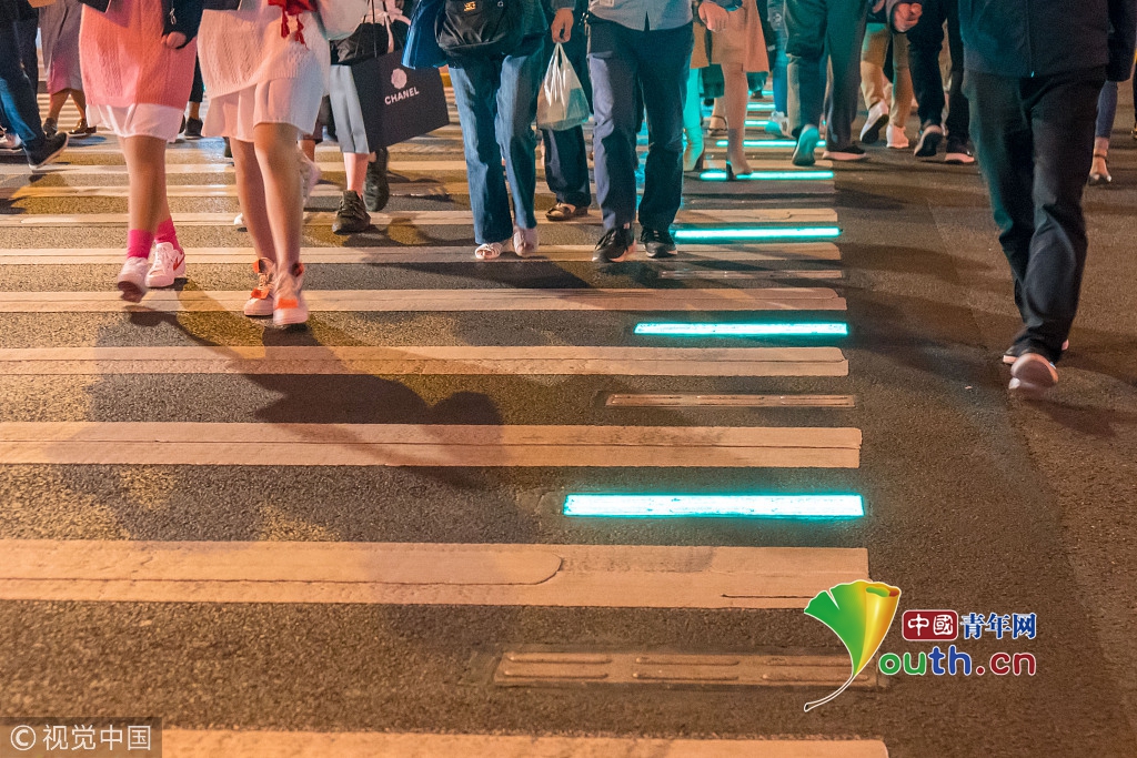 2018年10月10日,上海首條會(huì)發(fā)光人行道十一期間在外灘投入使用。