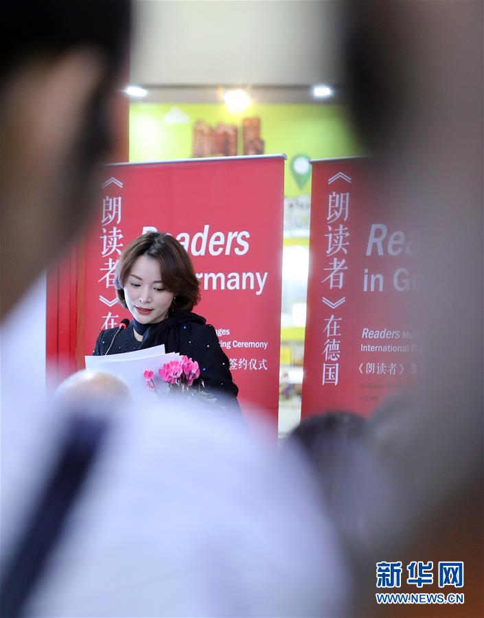 10月10日,在德國法蘭克福,中國電視節(jié)目主持人董卿在第70屆法蘭克福書展中國展區(qū)出席《朗讀者》朗讀會。