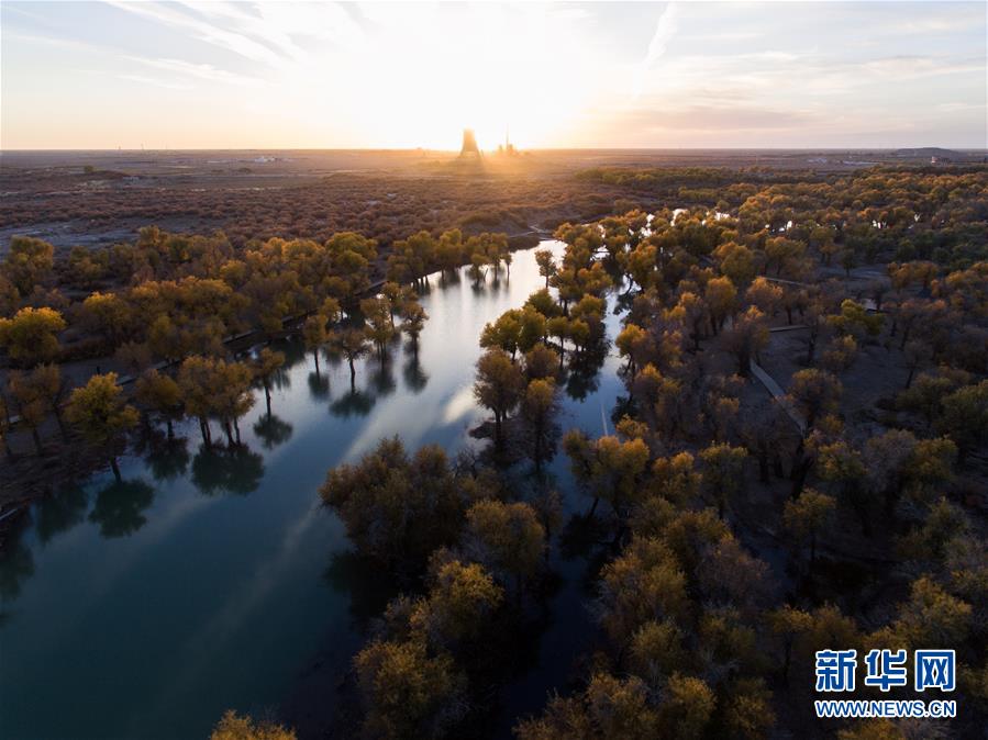 這是在內(nèi)蒙古自治區(qū)額濟(jì)納旗拍攝的胡楊林(10月10日無人機(jī)拍攝)。 金秋時(shí)節(jié),內(nèi)蒙古自治區(qū)額濟(jì)納旗胡楊林如同披上金裝,成為大漠中的一抹亮色,吸引眾多中外游客前來觀賞游玩。 新華社記者鄒予攝