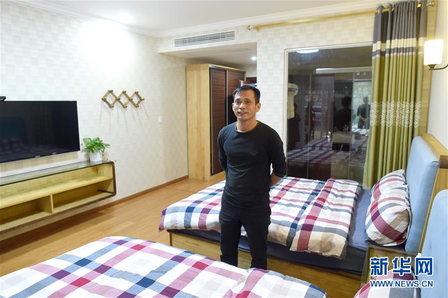 棠里塢村民宿負(fù)責(zé)人徐學(xué)德在民宿客房內(nèi)(10月16日攝)。 浙江諸暨市陳宅鎮(zhèn)棠里塢村積極盤活閑置資源,吸引社會資本參與鄉(xiāng)村振興。棠里塢村一處面積2000多平方米的廢棄豬場,經(jīng)過改造成為民宿,每到節(jié)假日客房供不應(yīng)求。 新華社記者 韓傳號 攝