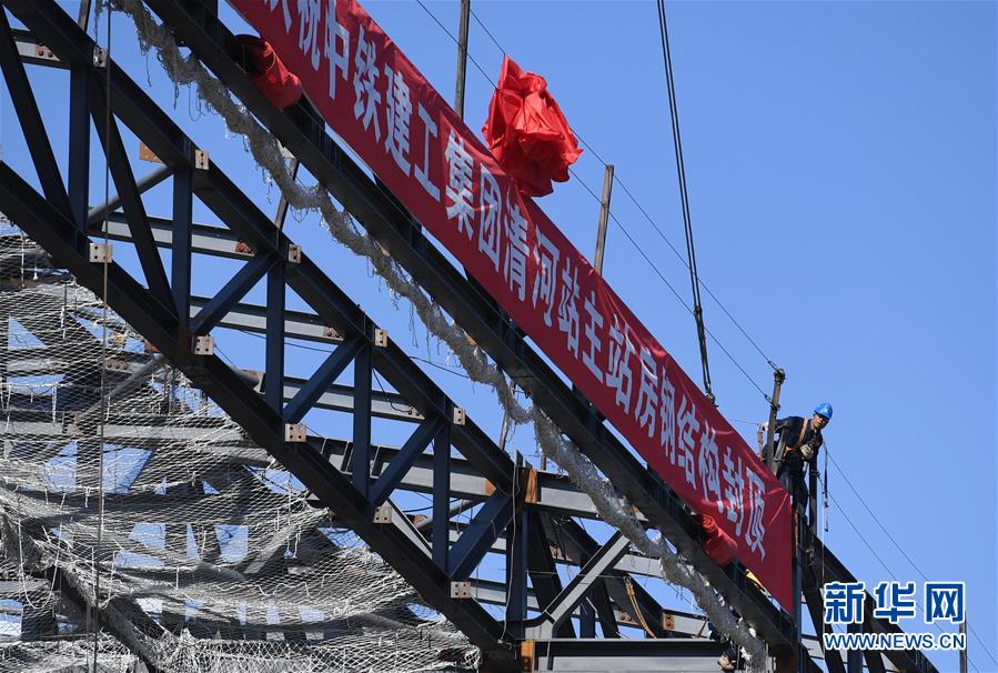 10月17日拍攝的建設中的清河站。當日,京張高鐵新建車站——清河站主體結構正式封頂。清河站是京張高鐵建筑面積最大的車站,同時也是京張高鐵在北京地區(qū)的始發(fā)站之一。 新華社發(fā)(馮凱 攝)