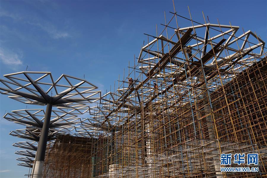 10月18日拍攝的建設(shè)中的北京世園會(huì)國際館。新華社記者 鞠煥宗 攝