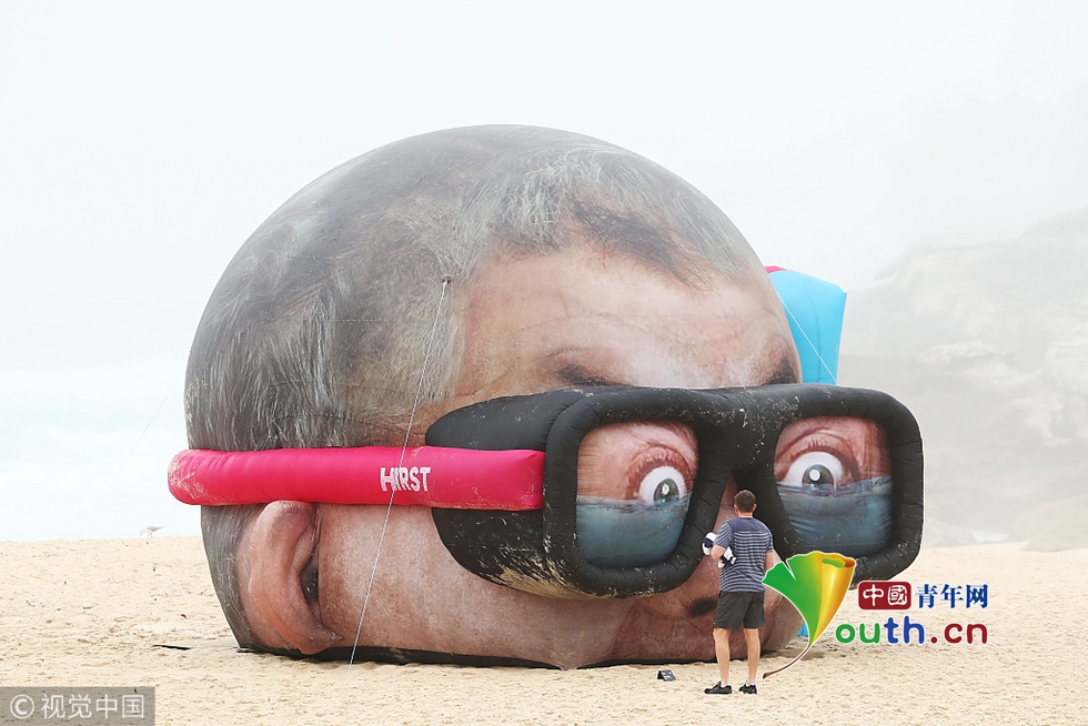 當(dāng)?shù)貢r(shí)間2018年10月18日,澳大利亞悉尼,第22屆澳大利亞邦迪海灘雕塑展開(kāi)幕。圖為“潛水員”從沙灘里探出頭來(lái)圖片作者:HANDOUT/視覺(jué)中國(guó)