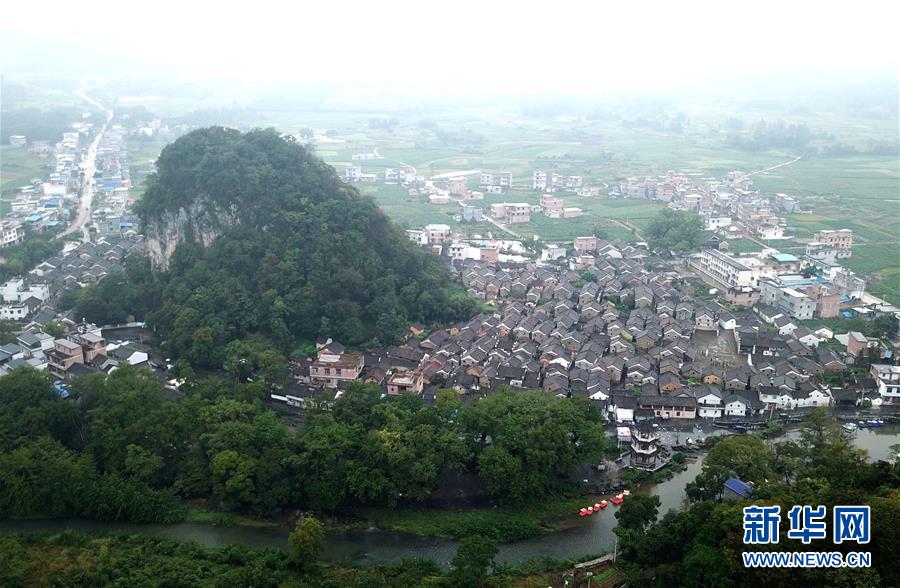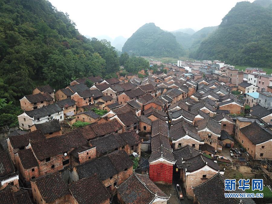 廣西富川瑤族自治縣朝東鎮(zhèn)秀水村連片民居(10月19日無人機(jī)拍攝)?!⌒氯A社記者 周華 攝