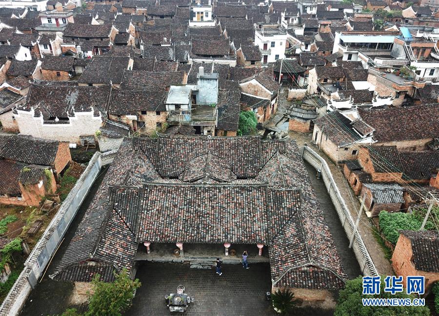廣西富川瑤族自治縣朝東鎮(zhèn)岔山村連片古民居群(10月19日無人機(jī)拍攝)?!⌒氯A社記者 周華 攝