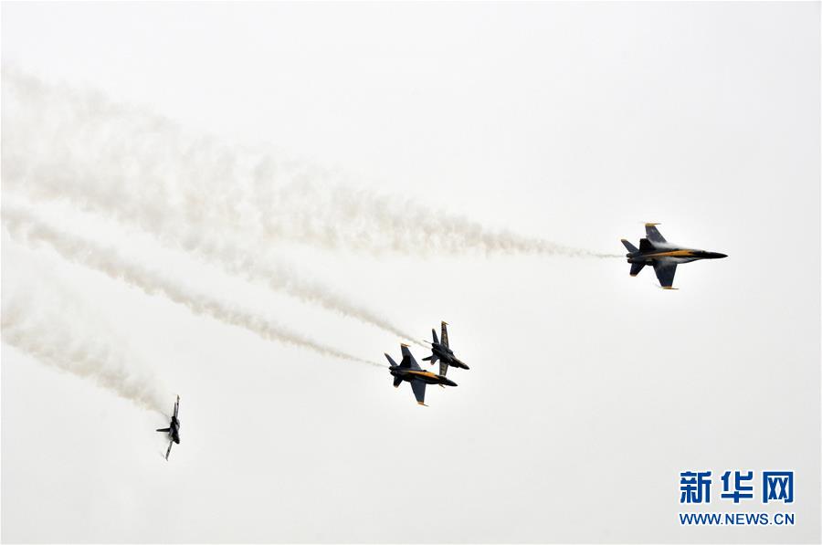 10月20日,在美國(guó)休斯敦,美國(guó)海軍“藍(lán)天使”飛行表演隊(duì)進(jìn)行飛行表演。 新華社記者劉立偉攝