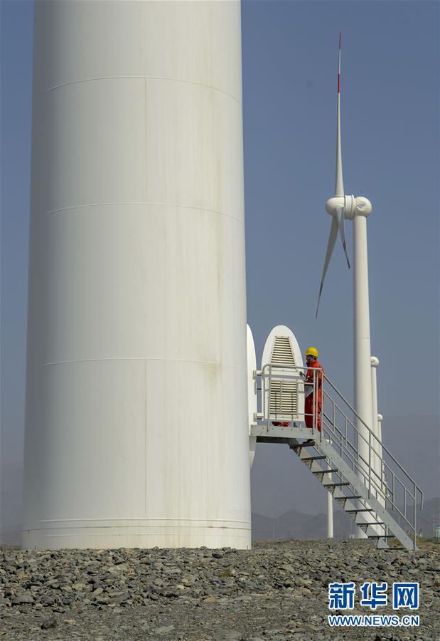 在新疆烏魯木齊達坂城風力發(fā)電場,工作人員查看風力發(fā)電設(shè)備(2018年9月18日攝)。今年以來,新疆穩(wěn)步推進新能源參與“疆電外送”、擴大與燃煤自備電廠調(diào)峰替代交易等多種電力交易方式,著力破解“綠色電力”上網(wǎng)難題,新能源發(fā)電量同比增加近13個百分點,而棄電量和棄電比實現(xiàn)“雙降”,綠色發(fā)展理念進一步落實。新疆是我國重要的能源供應(yīng)和儲備基地,風能、太陽能儲量豐富。近年來,新疆新能源裝機總量突破2700萬千瓦,規(guī)模和占比均居全國前列。新華社記者 趙戈 攝