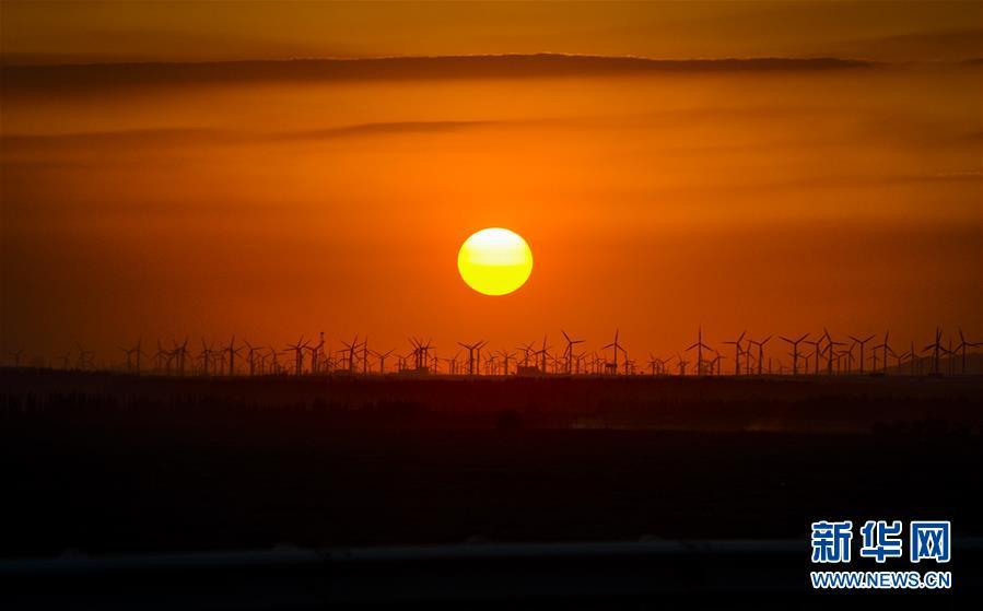 夕陽下位于新疆烏魯木齊南郊的達坂城風力發(fā)電場(2014年6月6日攝)。今年以來,新疆穩(wěn)步推進新能源參與“疆電外送”、擴大與燃煤自備電廠調(diào)峰替代交易等多種電力交易方式,著力破解“綠色電力”上網(wǎng)難題,新能源發(fā)電量同比增加近13個百分點,而棄電量和棄電比實現(xiàn)“雙降”,綠色發(fā)展理念進一步落實。 新疆是我國重要的能源供應(yīng)和儲備基地,風能、太陽能儲量豐富。近年來,新疆新能源裝機總量突破2700萬千瓦,規(guī)模和占比均居全國前列。新華社記者 趙戈 攝
