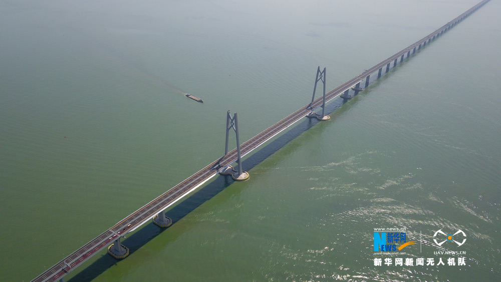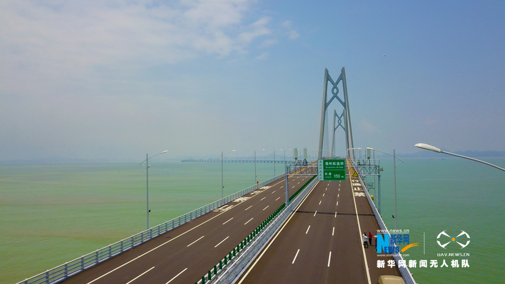 圖為新華網(wǎng)無(wú)人機(jī)隊(duì)航拍港珠澳大橋。新華網(wǎng) 伍嘉煒 攝