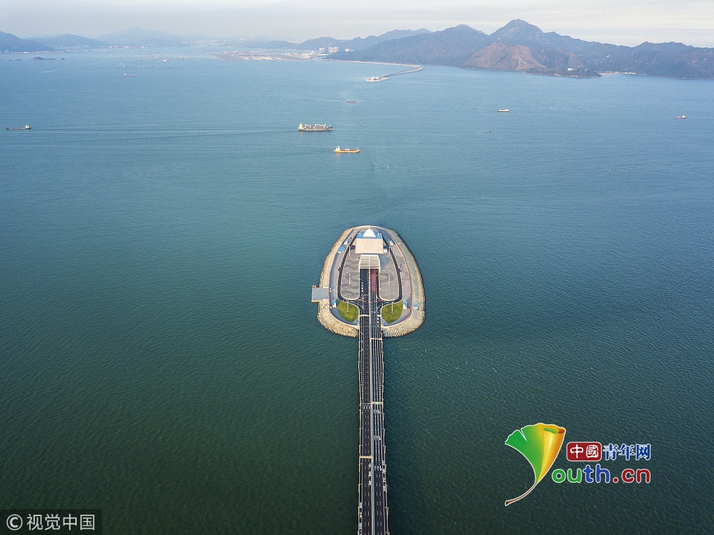 “超級(jí)工程”港珠澳大橋?qū)⒂?4日上午9時(shí)正式通車,一波美圖先睹為快。黃昆震 攝 圖片來(lái)源:視覺(jué)中國(guó)