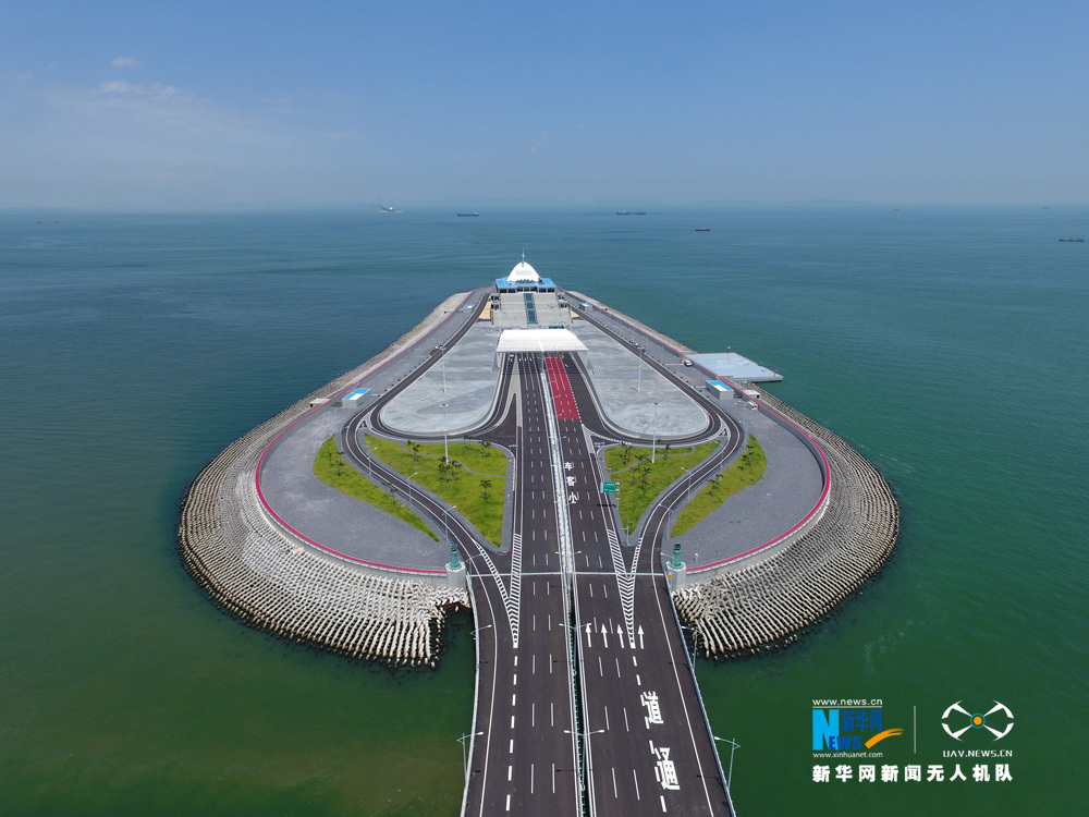 圖為新華網(wǎng)無(wú)人機(jī)隊(duì)航拍港珠澳大橋。新華網(wǎng) 黃璐璐 攝