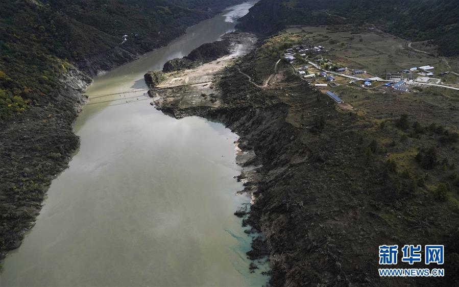 10月20日拍攝的西藏雅魯藏布江米林縣堰塞湖自然過流后的加拉村。 10月19日13時30分,西藏雅魯藏布江米林縣堰塞湖開始自然過流。記者從應急管理部牽頭的聯(lián)合工作組獲悉,截至20日7時,雅魯藏布江堰塞湖壩前水位已下降56米,估算留存水量1.6億立方米,堰塞湖洪水威脅得到緩解,防洪安全風險大大減輕,并將繼續(xù)降低。 10月20日,記者乘坐直升機從空中拍攝了雅魯藏布江堰塞湖自然過流的畫面。 新華社記者普布扎西攝