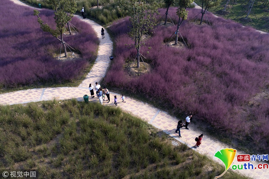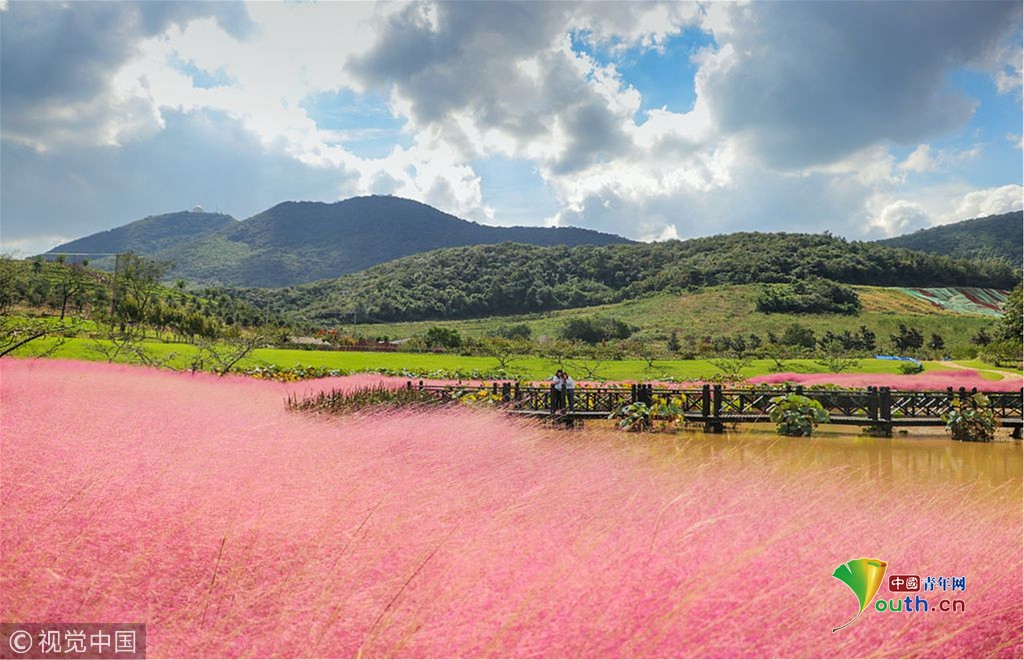 中國(guó)青年網(wǎng)北京10月7日電 2018年10月6日,游客在“粉色田野”里游玩、留影。粉黛亂子草是一種觀賞草種,該植物夏季為主要生長(zhǎng)季,全株綠色,花期為9月中旬至11月中旬,開(kāi)花時(shí),綠葉為底,粉紫色花穗如發(fā)絲從基部長(zhǎng)出,遠(yuǎn)看如紅色云霧。