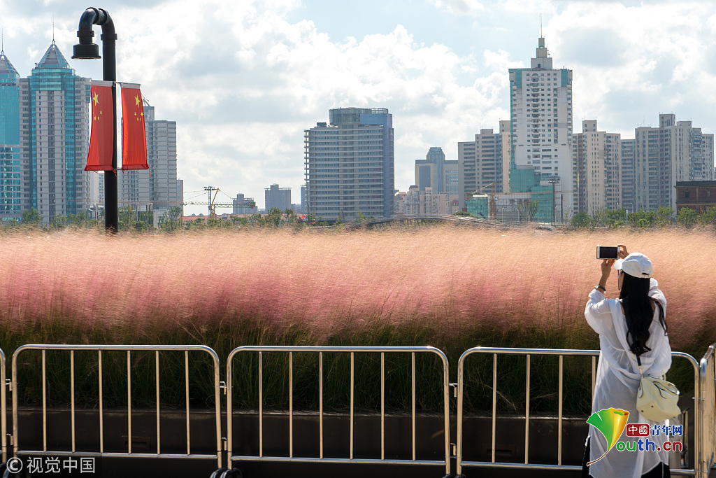 上海楊浦濱江粉黛亂子草成片盛開(kāi) 美不勝收