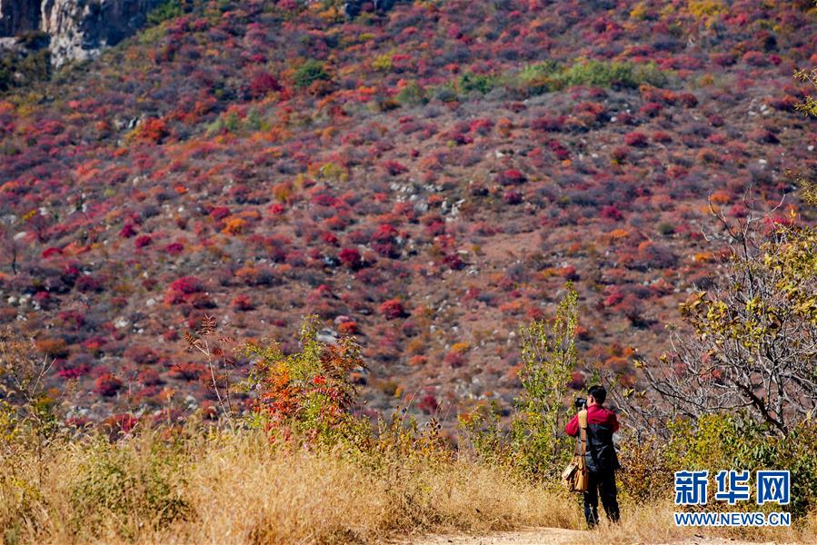 10月24日,游客在河北省武安市賀進(jìn)鎮(zhèn)后臨河村拍攝紅葉。 金秋時節(jié),位于太行山區(qū)的河北省武安市賀進(jìn)鎮(zhèn)后臨河村的紅葉進(jìn)入觀賞佳期。 新華社記者 王曉 攝