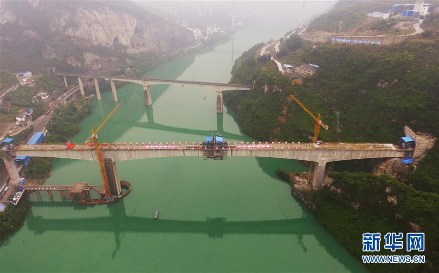 10月23日,在重慶涪陵,施工人員在渝懷鐵路涪秀二線重點(diǎn)工程——烏江右線大橋主跨合龍現(xiàn)場作業(yè)。 當(dāng)日,由中鐵四局承建的渝懷鐵路涪秀二線重點(diǎn)工程——烏江右線大橋主跨成功合龍,標(biāo)志著大橋主體工程全部順利結(jié)束。烏江右線大橋項(xiàng)目全程460.1米,主跨192米,跨越烏江和319國道。在兩年多的建設(shè)過程中,施工人員攻克了“不等高墩”“不對稱邊跨”“邊跨入隧”等多個(gè)技術(shù)難題。 新華社記者王全超攝