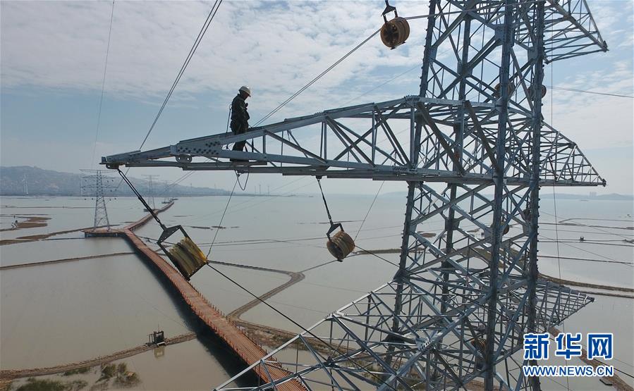 當日,福建省重點工程——莆田埭頭風電220千伏送出工程第一根導線順利牽引出線。為避免在海上構筑圍堰,工程采用全國首創(chuàng)的全路徑鋼棧橋橫跨海灣方式,減少了土地占用,有助于保護生態(tài)環(huán)境,為跨海電力施工提供了實踐經(jīng)驗。