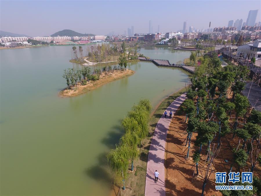空中俯瞰長(zhǎng)沙后湖(10月29日無人機(jī)拍攝)。 近日,湖南長(zhǎng)沙后湖水環(huán)境綜合整治工程全面完工,沿湖生態(tài)環(huán)境舊貌換新顏,成為市民游客休閑散步的好去處。 新華社記者 龍弘濤 攝