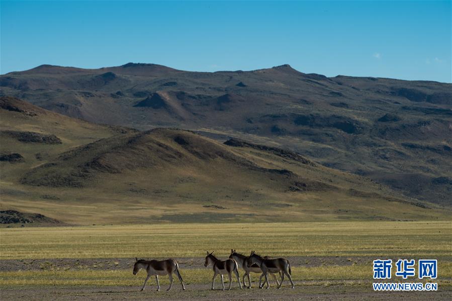 在西藏阿里地區(qū)境內(nèi)拍攝的藏野驢(9月8日攝)。 阿里地處西藏西部,平均海拔4500米以上,面積30多萬平方公里,羌塘國家級自然保護區(qū)幾乎涵蓋整個阿里地區(qū),是眾多野生動物生活的樂園。 新華社記者 普布扎西 攝