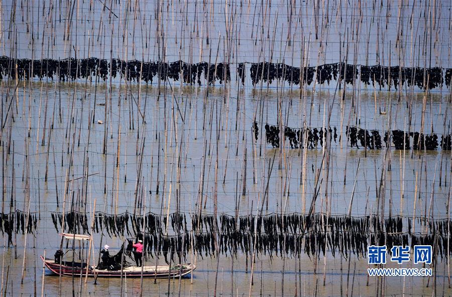10月24日,福建莆田蔣山村村民在收獲紫菜?! ⌒氯A社記者張國俊 攝