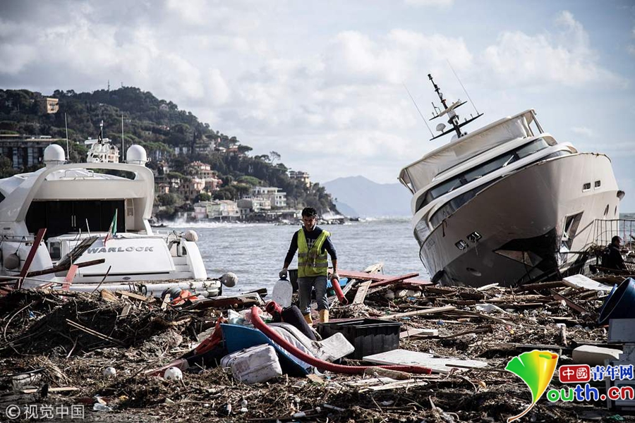 當(dāng)?shù)貢r間2018年10月30日,意大利拉帕羅,暴風(fēng)雨襲擊當(dāng)?shù)馗劭冢⒋輾Я舜髩蔚囊徊糠?。?jù)外媒消息,當(dāng)?shù)貢r間10月27日,意大利迎來了新一輪大風(fēng)降雨天氣。截止到29日,惡劣天氣造成了至少10人死亡,意大利民防局向各地區(qū)發(fā)布了橙色、黃色和紅色預(yù)警。