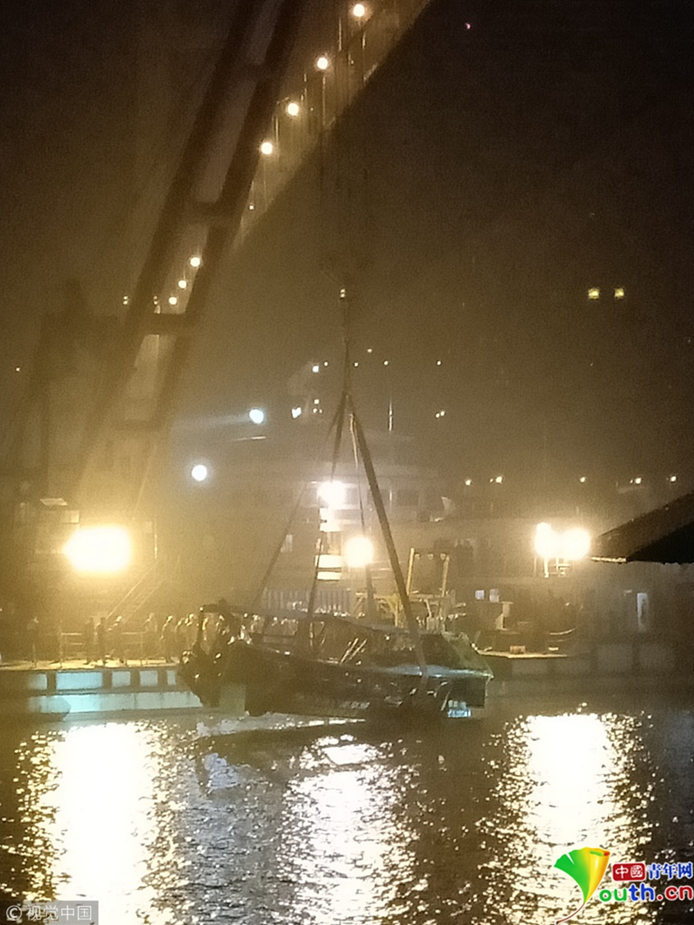 10月31日晚,重慶萬(wàn)州長(zhǎng)江二橋墜江公交車被打撈出水。記者在重慶萬(wàn)州墜江公交車救援現(xiàn)場(chǎng)看見,公交車被四條繩索從四個(gè)方向包圍,車身明顯變形,車窗玻璃全部破裂。