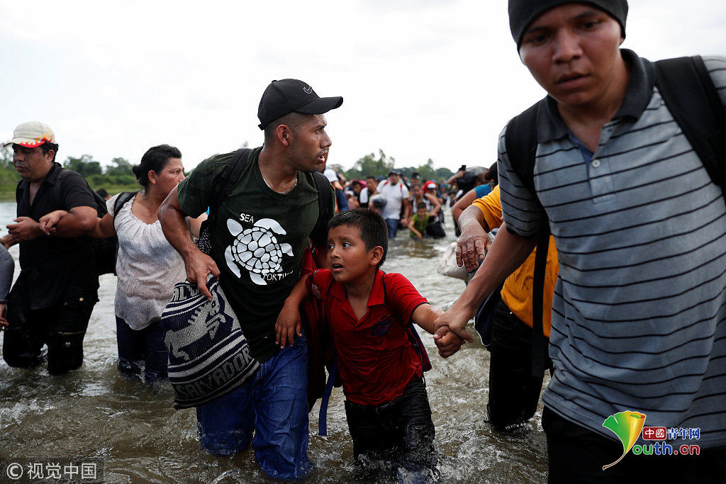 當(dāng)?shù)貢r(shí)間2018年11月2日,墨西哥與危地馬拉邊界,中美洲移民繼續(xù)向美國(guó)挺進(jìn)。圖片作者:CARLOS GARCIA RAWLINS