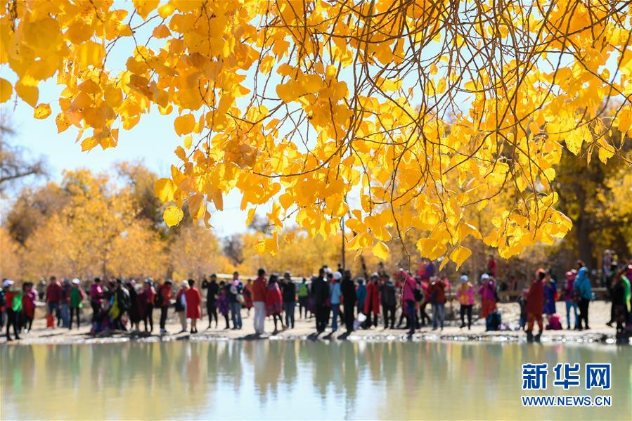 10月10日,在內(nèi)蒙古自治區(qū)額濟納旗,游客在觀賞胡楊林。 金秋時節(jié),內(nèi)蒙古自治區(qū)額濟納旗胡楊林如同披上金裝,成為大漠中的一抹亮色,吸引眾多中外游客前來觀賞游玩。 新華社記者劉磊攝