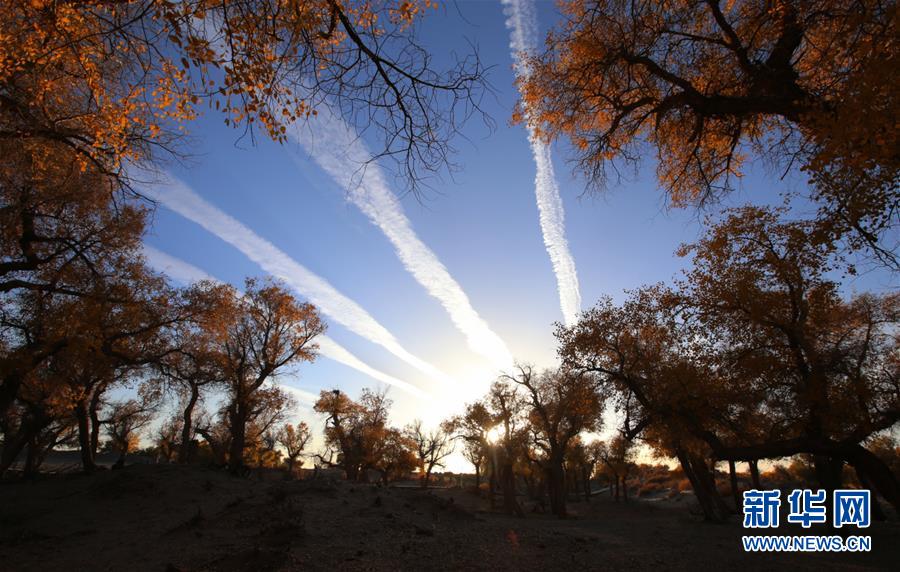 這是在內蒙古自治區(qū)額濟納旗拍攝的胡楊林(10月10日攝)。 金秋時節(jié),內蒙古自治區(qū)額濟納旗胡楊林如同披上金裝,成為大漠中的一抹亮色,吸引眾多中外游客前來觀賞游玩。 新華社記者安希雅攝