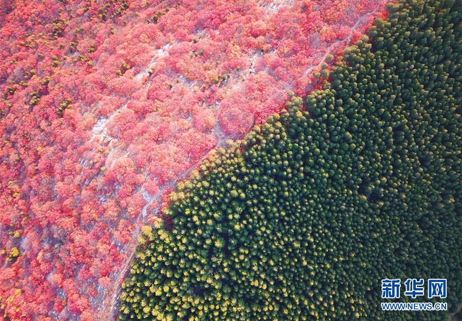 平分秋色! 山東濟南楔子山現“一山雙色”景觀