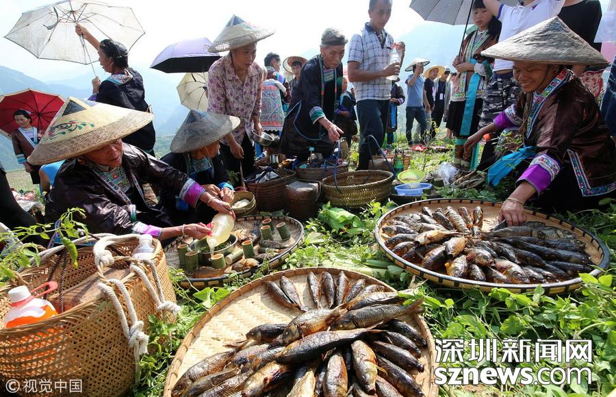 深圳新聞網(wǎng)訊 2018年9月15日,廣西柳州市融水苗族自治縣喜迎中國(guó)首屆“農(nóng)民豐收節(jié)”——2018金秋燒魚季啟動(dòng)儀式在桿洞鄉(xiāng)花孖苗寨舉行,數(shù)百名苗族群眾和游人共同開展了水田拔河、田間捉魚、傳統(tǒng)打谷和燒魚等活動(dòng),慶祝豐收。