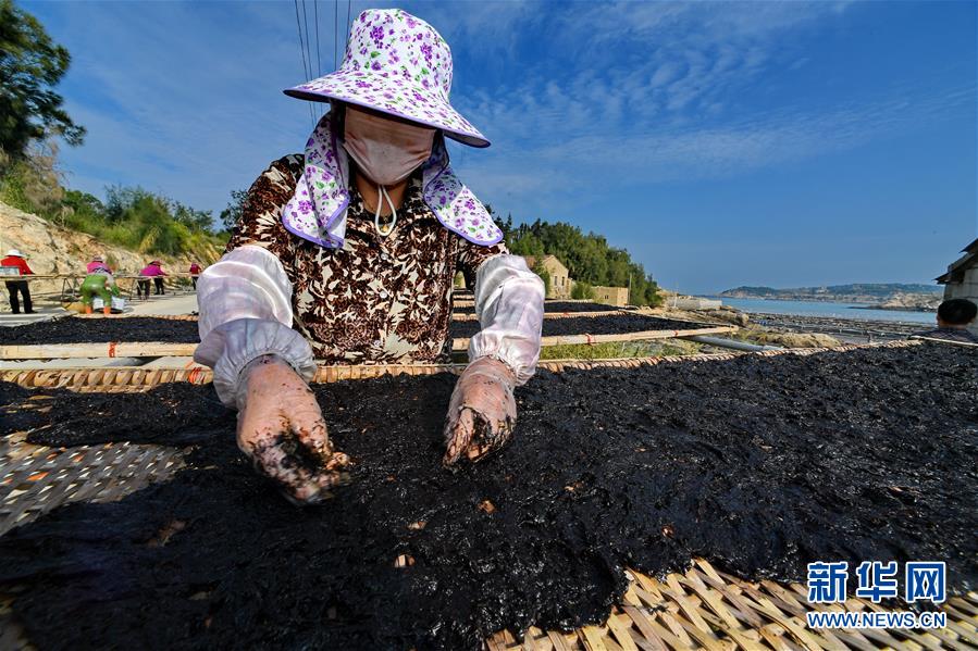 10月24日,福建莆田蔣山村村民在收獲紫菜?! ⌒氯A社記者姜克紅 攝