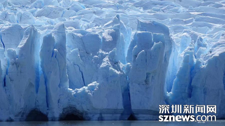 莫雷諾冰川的一段呈冰堤狀,冰堤把冰川與正對面的麥哲倫半島連接起來。隨著流水滲透沖刷,冰堤下部最終會形成一個拱門。當(dāng)拱門上方的冰墻漸漸支撐不住時,便會轟然崩塌。 李仁奇 攝