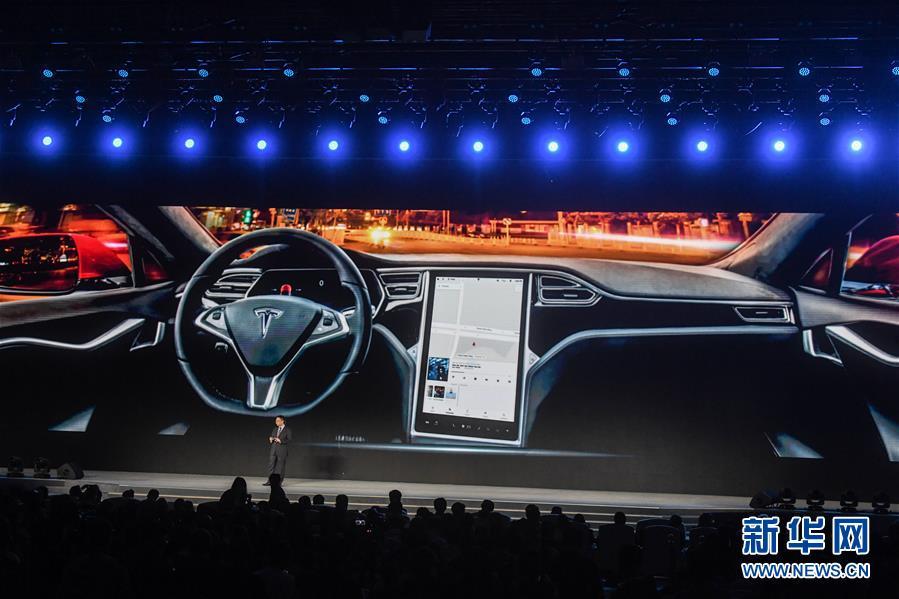 11月7日,特斯拉公司代表在介紹特斯拉智能售后服務。新華社記者徐昱攝