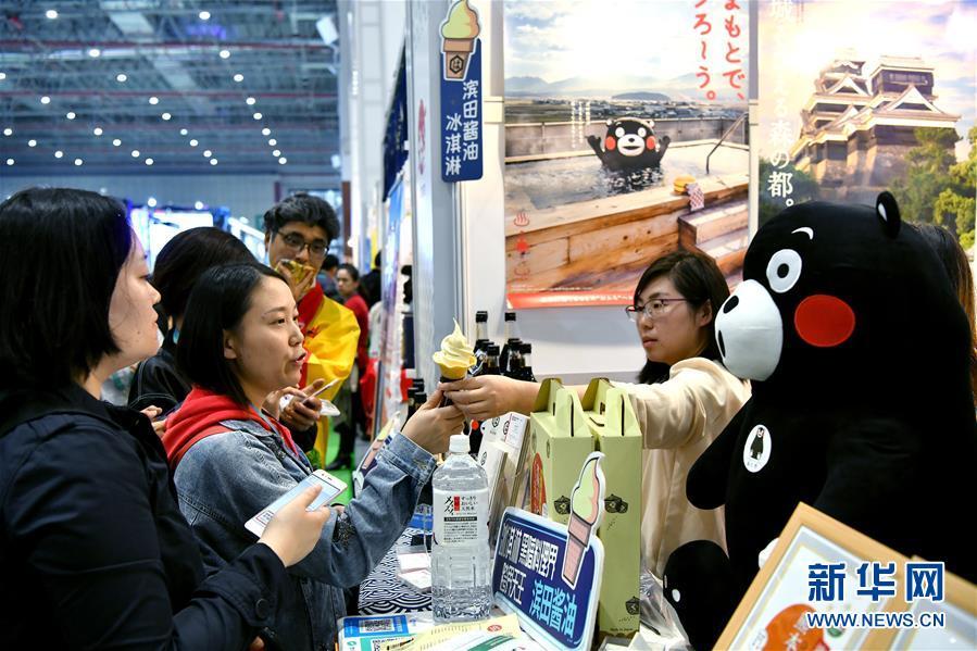 11月7日,觀眾在日本濱田醬油株式會(huì)社展臺(tái)品嘗醬油冰淇淋。 新華社記者 李鑫 攝
