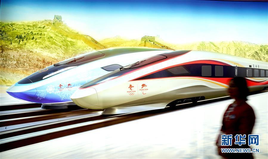 11月8日,一位志愿者從進(jìn)博會(huì)中國(guó)館一幅高鐵概念圖前走過。 新華社記者 陳建力 攝