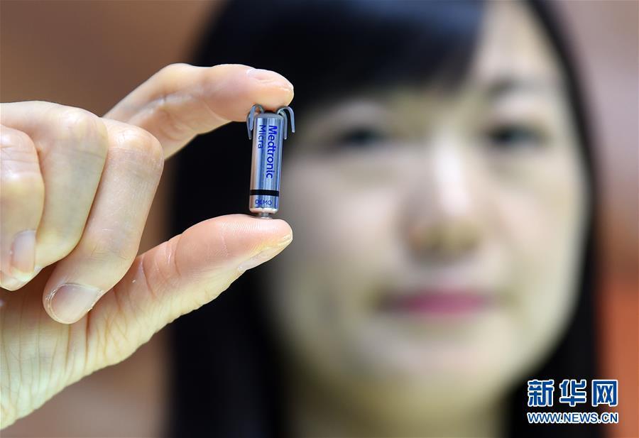 11月8日,在進(jìn)博會(huì)醫(yī)療器械及醫(yī)藥保健展區(qū)美敦力公司展臺(tái),工作人員在展示全球最小的心臟起搏器。新華社記者 韓瑜慶 攝