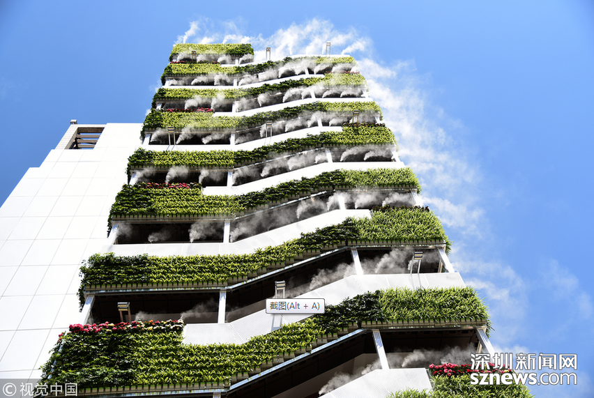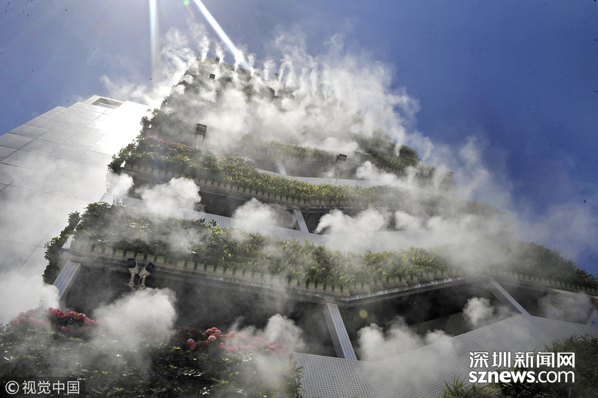 相關(guān)鏈接 10層高樓長滿綠植“仙氣飄飄” 這座建筑在抖音火了! 深圳新聞網(wǎng)訊 2018年6月10日,西安,高樓外長滿綠植,還縈繞著霧氣。這段只有6秒的短視頻在抖音火了,網(wǎng)友評論這是“第四代住房”,其實這是西安市眾創(chuàng)示范街區(qū)的一處安裝了智能霧森系統(tǒng)的西北最大戶外垂直綠化。 夏天能區(qū)域降溫5℃至10℃ 還可有效抑制PM10 “仙氣飄飄”、“西安天氣有多熱,房子都冒煙了”,這是一段抖音小視頻里網(wǎng)友的評論留言。視頻中一棟10層高的樓外側(cè)樓梯處掛滿了綠植,同時綠植上方還有噴霧。藍(lán)藍(lán)的天空當(dāng)做背景,引來不少人上前拍照,配著背景音樂的確讓人感覺清涼無比。